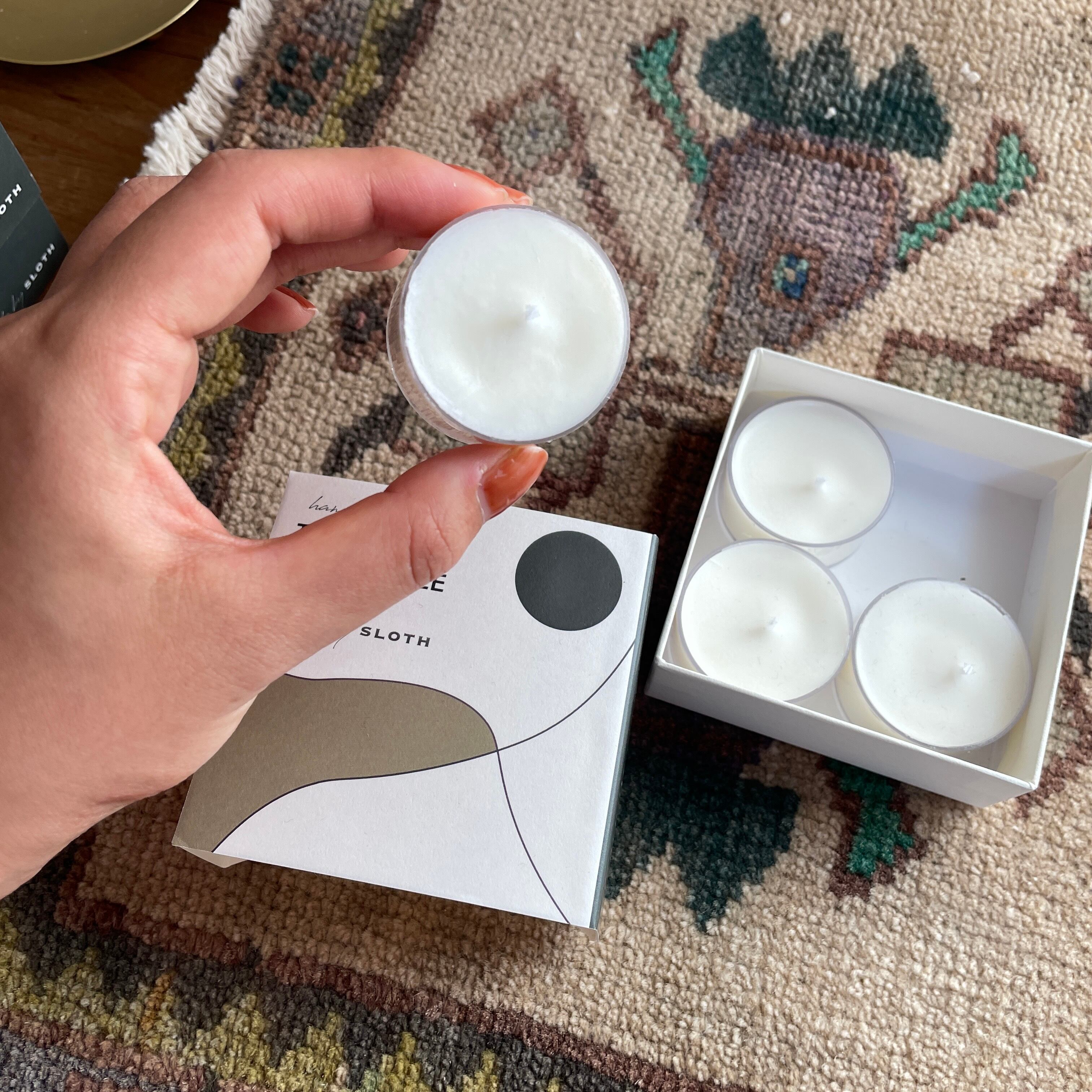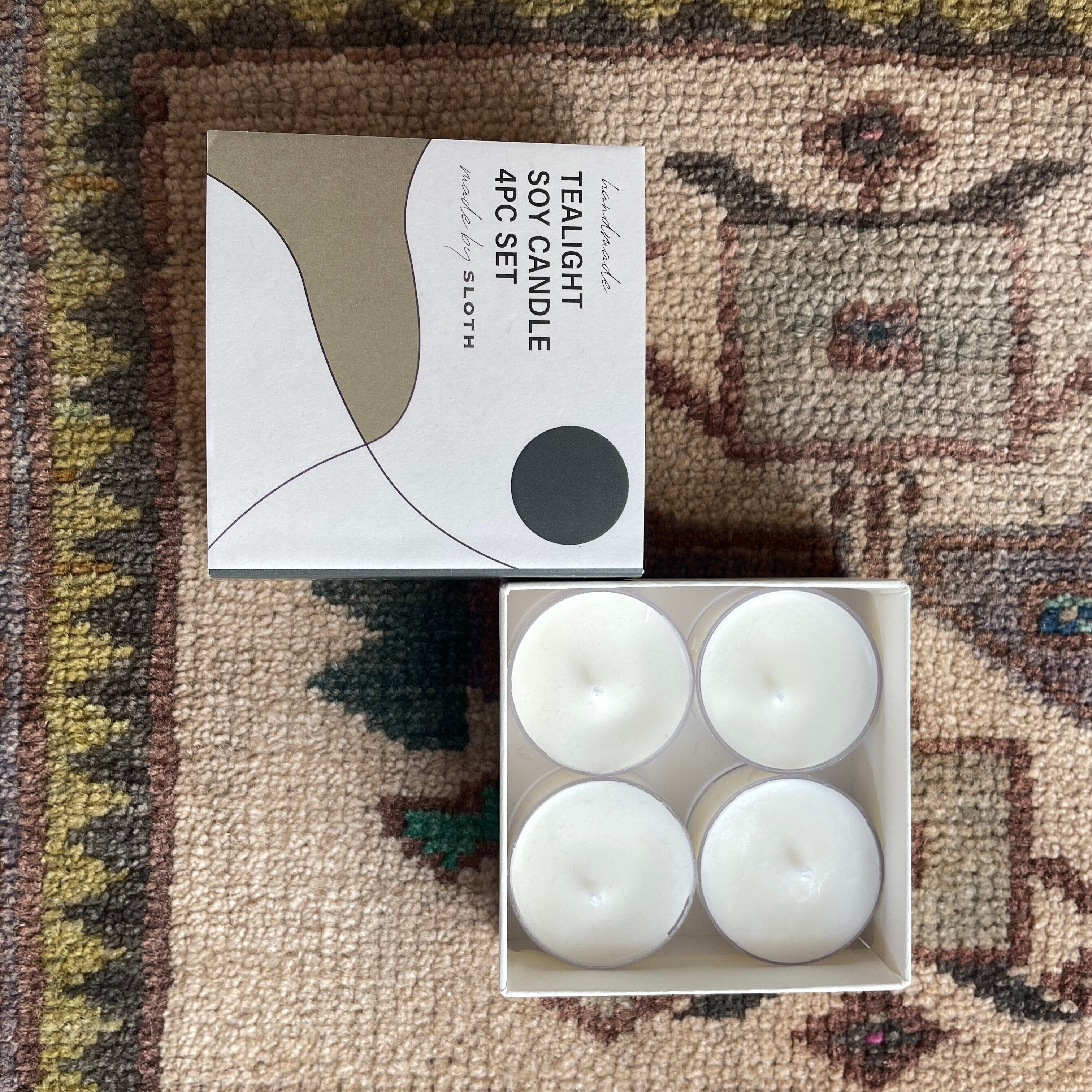 大豆ワックスを使用して作ったティーライトソイキャンドル4パックセットです。ススが出にくく、身体にも環境にも良い素材です。